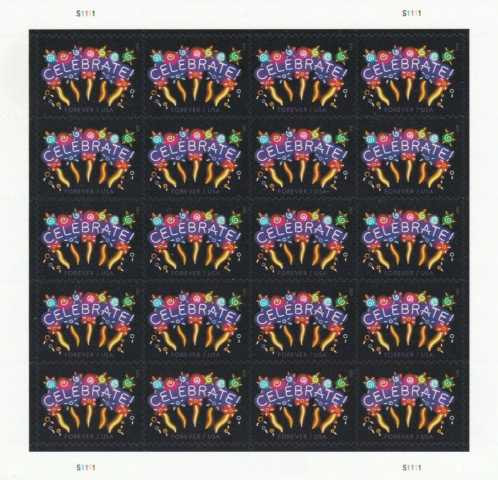 Neon Celebrate Forever Stamps